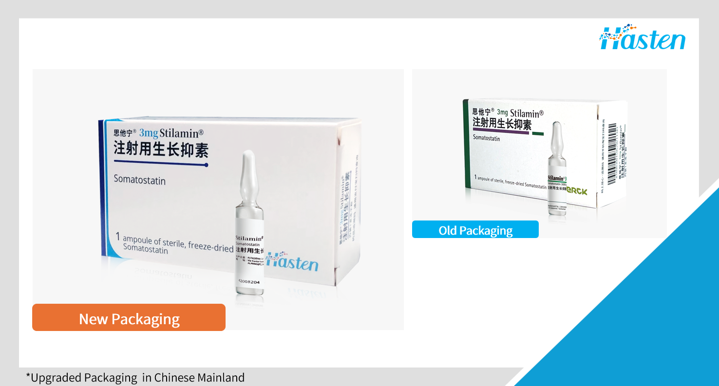 We are pleased to announce that following the completion of the Marketing Authorization Holder (MAH) transfer for Hasten’s Stilamin® (Somatostatin) in the Greater China and Switzerland, the product has upgraded its packaging after passing regulatory compliance procedures and been officially implemented across all authorized territories.
